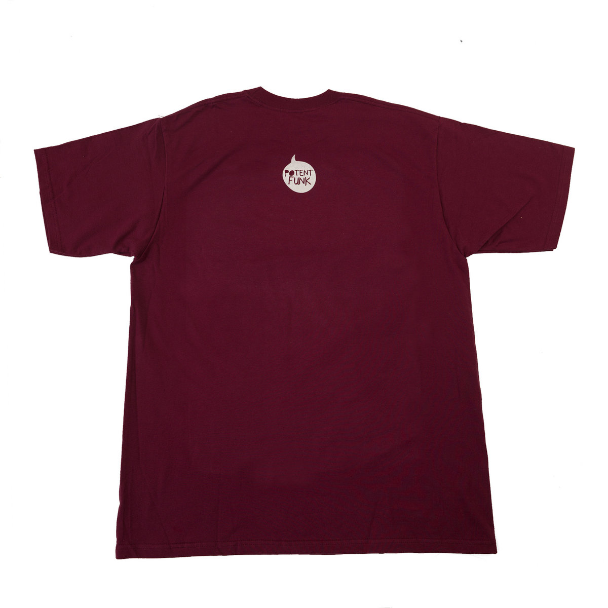Maroon tee with the artwork from 'Ilaman - Ugly Days' EP printed on chest and PF logo on neck-back.